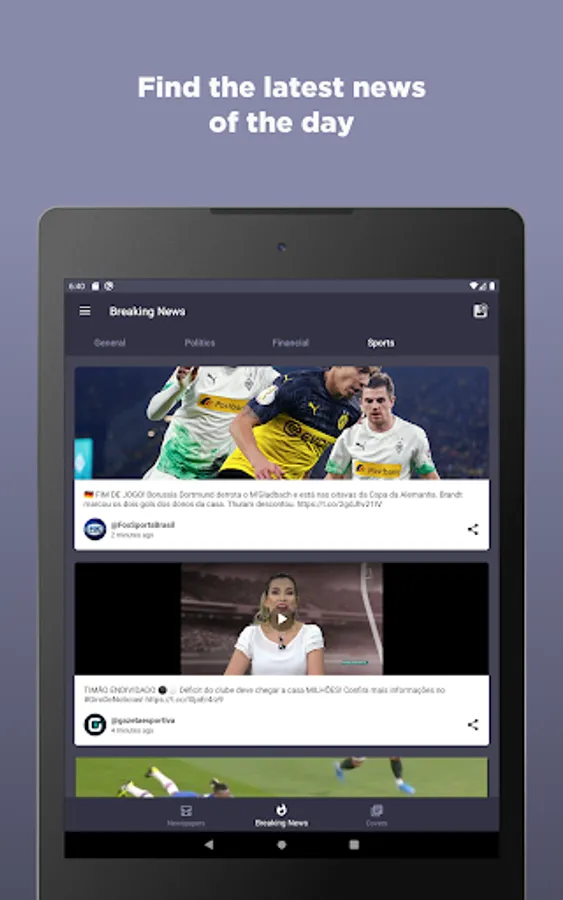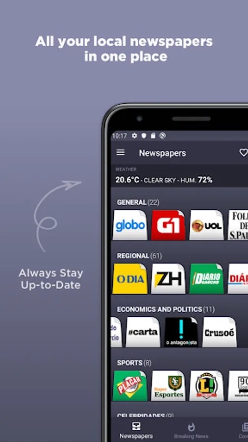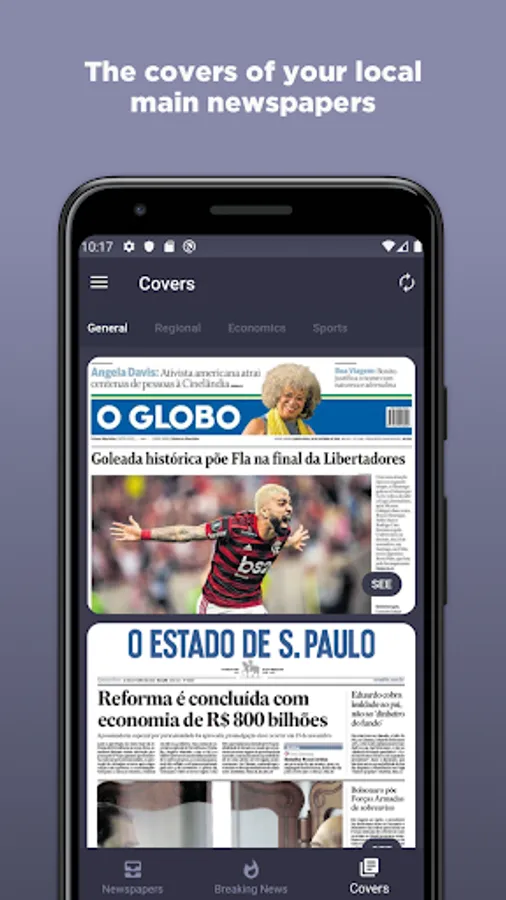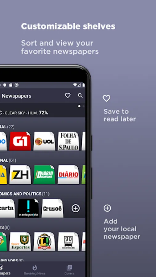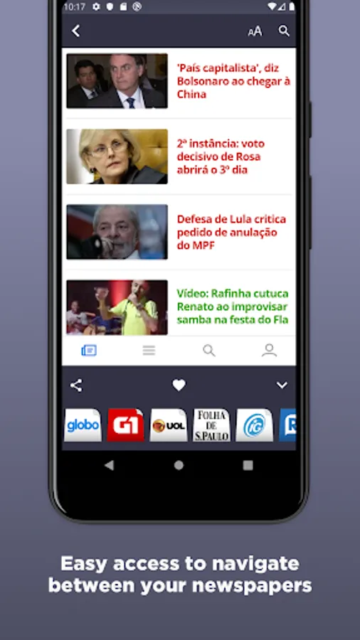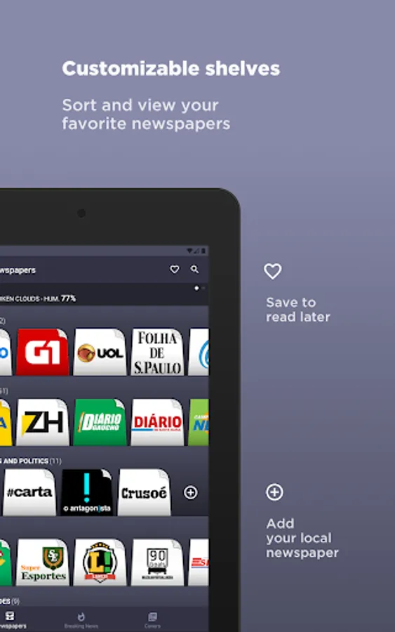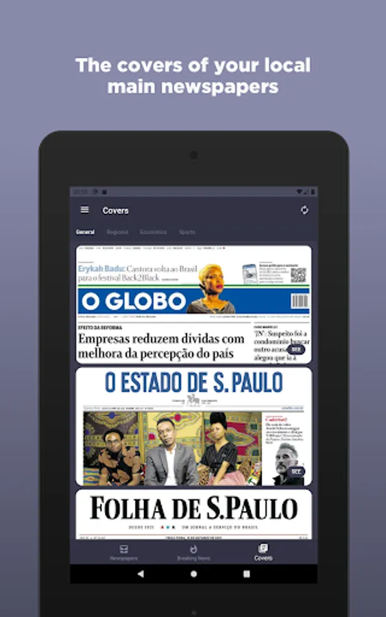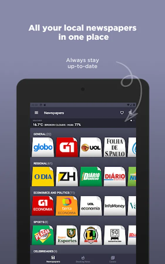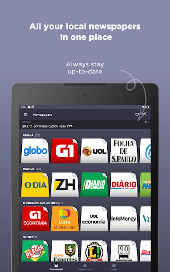 Brazilian Newspapers is an application that groups all news of the most important newspapers and magazines of Brazil. With this application you can have in one place, all the information you want without browse individual websites of each newspaper or magazine.