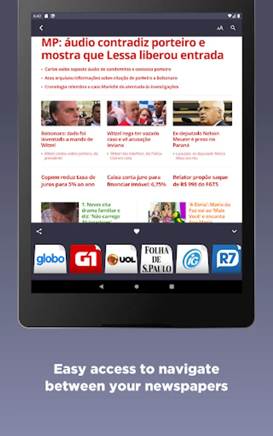 The logos and content of each newspaper or magazine are the exclusive property of the same. Brazilian Newspapers only use them in order to be recognized by readers who use the application, and access the web pages of each newspaper.