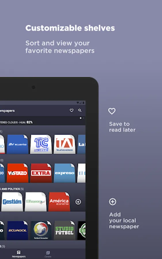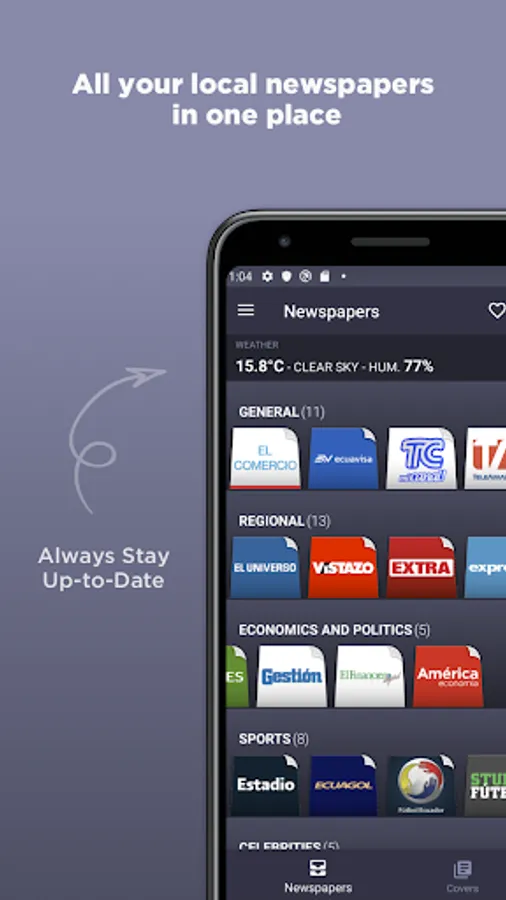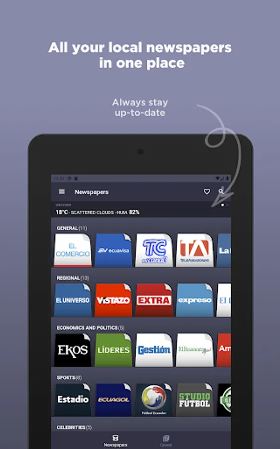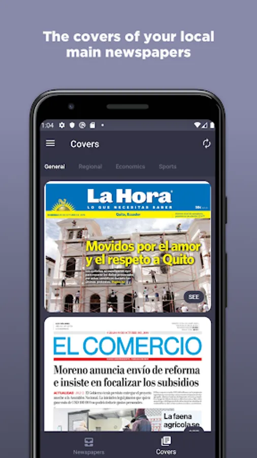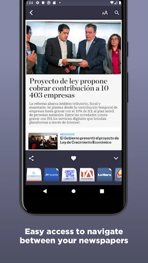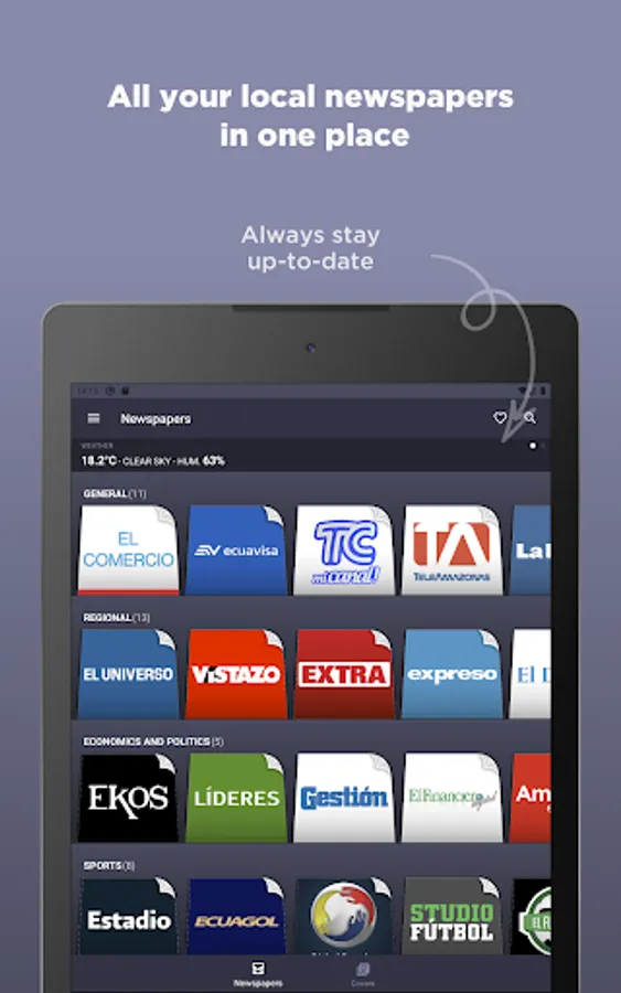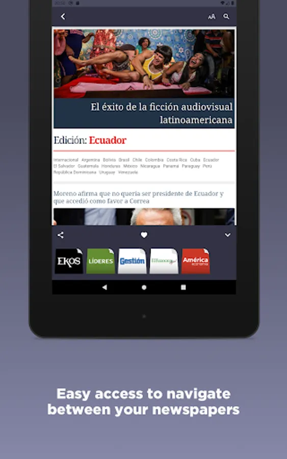 Ecuadorian Newspapers is an application that groups all news of the most important newspapers and magazines of Ecuador. With this application you can have in one place, all the information you want without browse individual websites of each newspaper or magazine.