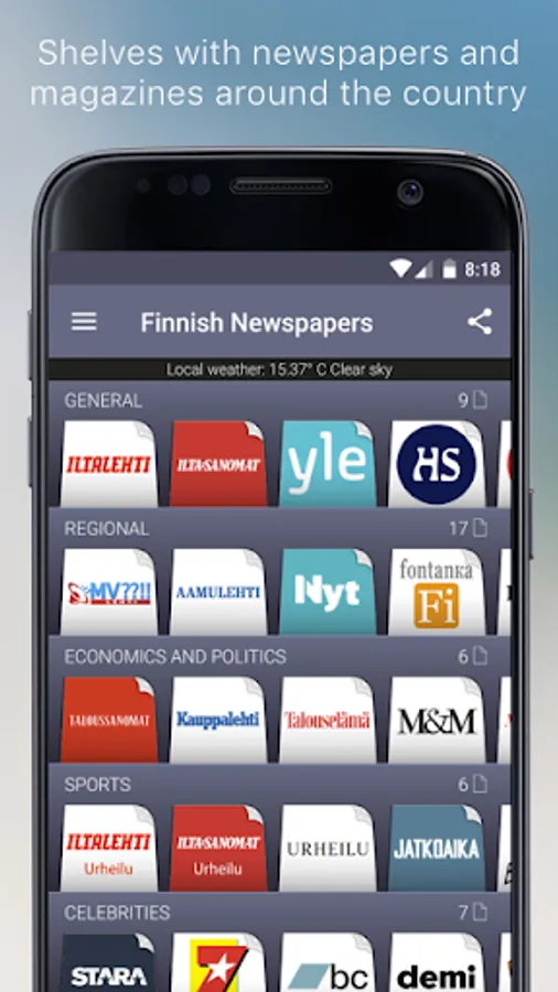 The logos of each newspaper or magazine are the exclusive property of the same. Finnish Newspapers only use them in order to be recognized by readers who use the application, to access the information they want.