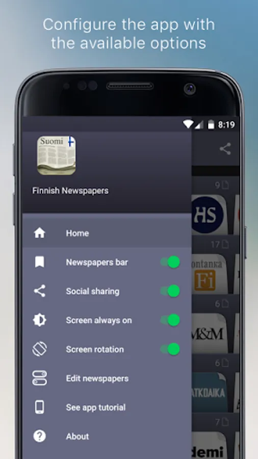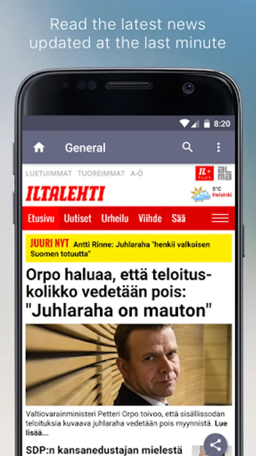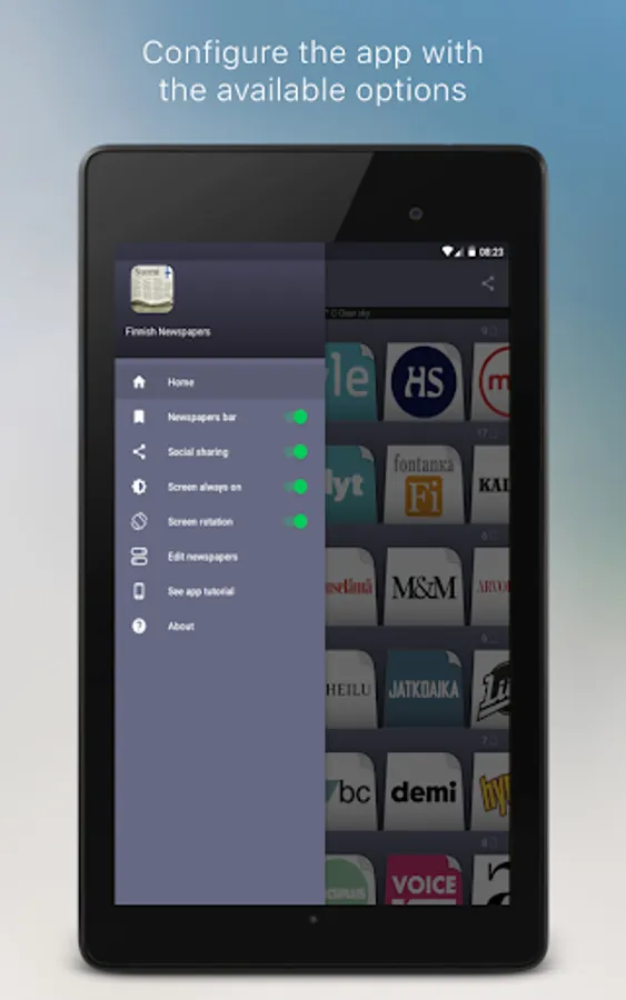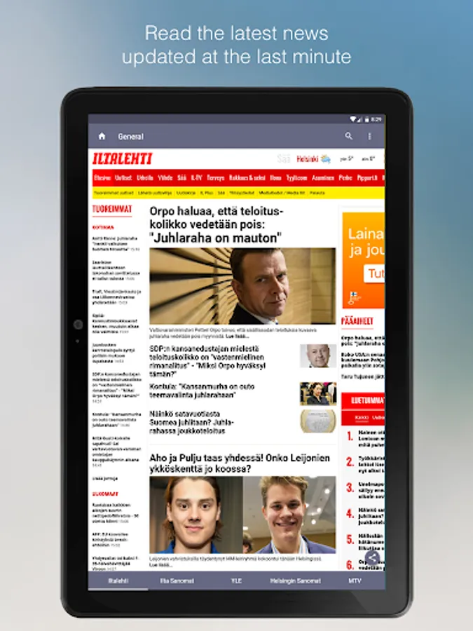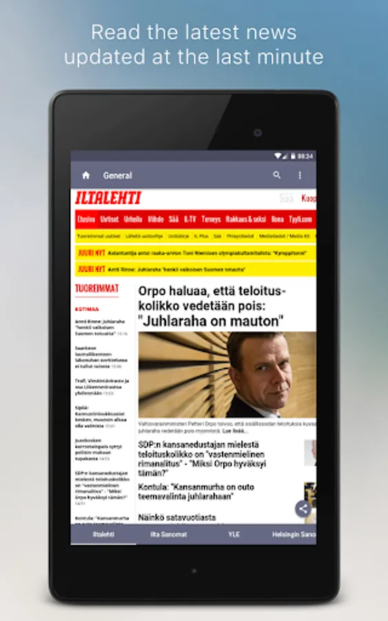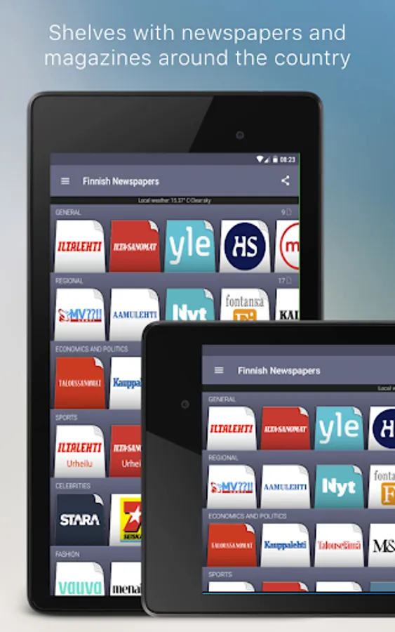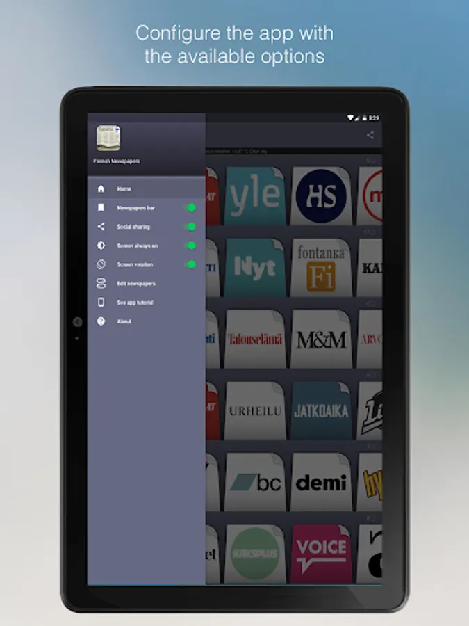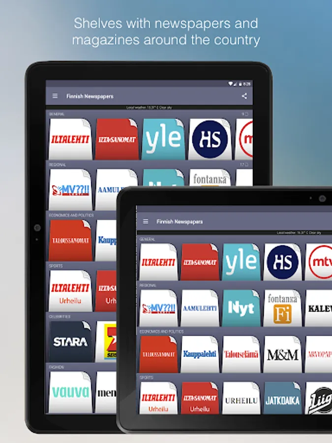Finnish Newspapers is an application that groups all the news of the most important newspapers and magazines in Finland together. With this application you can have all the information you want in one place, without having to browse to each of the news sites you wish to visit.