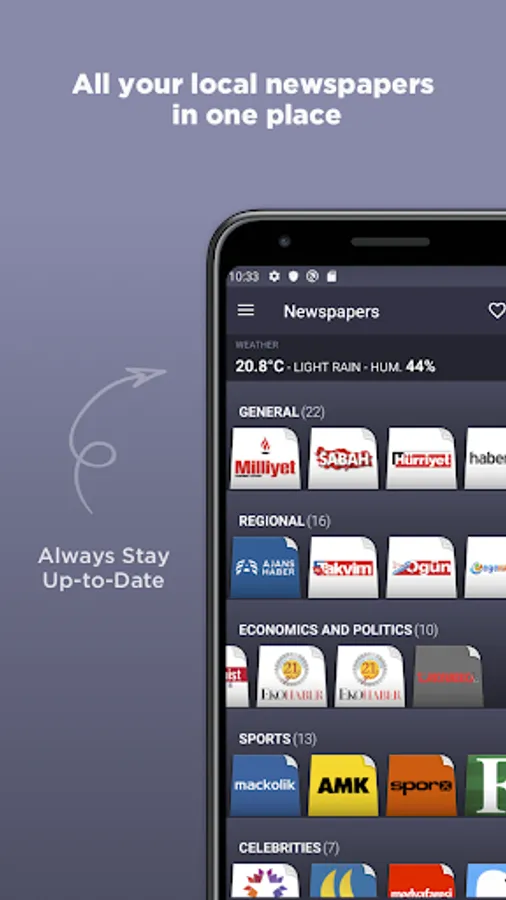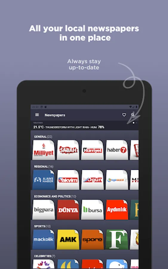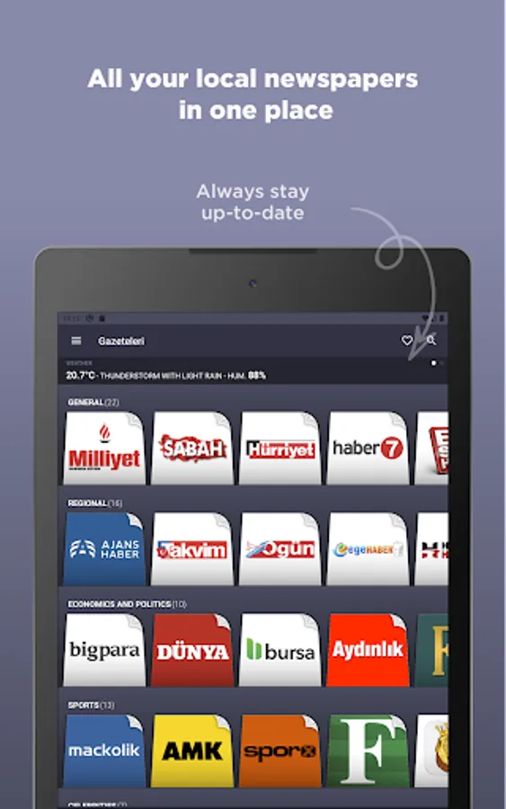 Turkish Newspapers is an application that groups all news of the most important newspapers and magazines of Turkey. With this application you can have in one place, all the information you want without browse individual websites of each newspaper or magazine.