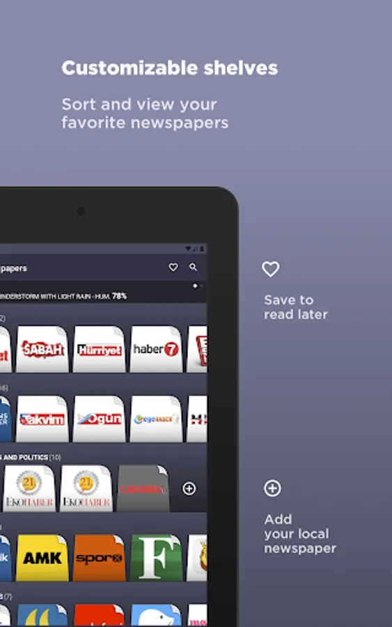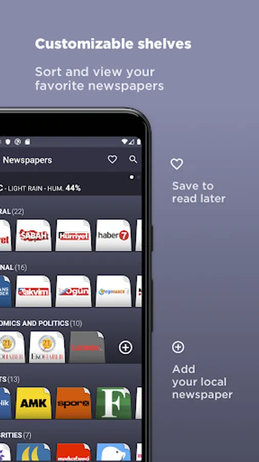 ◉ Add newspapers to your wish in any shelf.