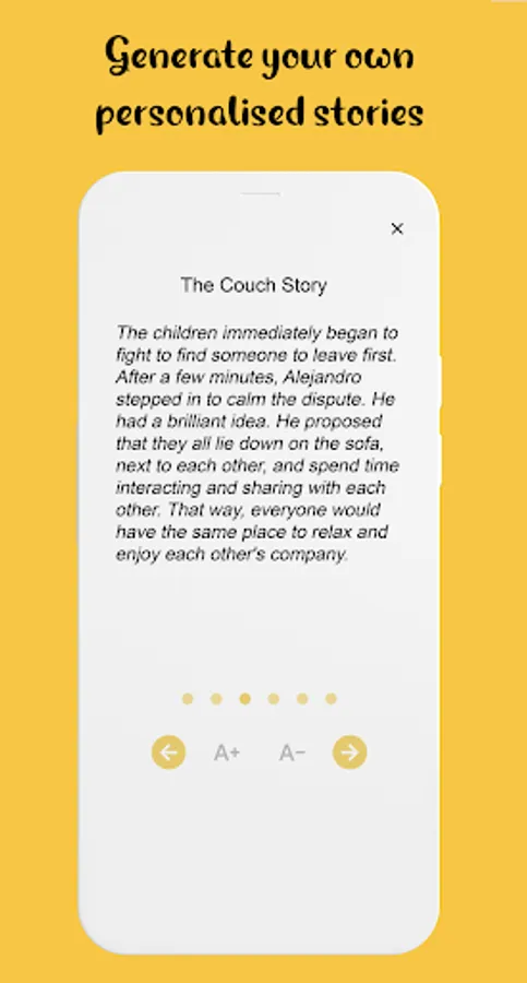 Storytelling is an activity that not only entertains and amuses children, but also has important benefits for their emotional, social and cognitive development. With our App, you will be able to create unique and personalised stories that promote the learning of values, emotional skills, critical thinking and creativity in your children.