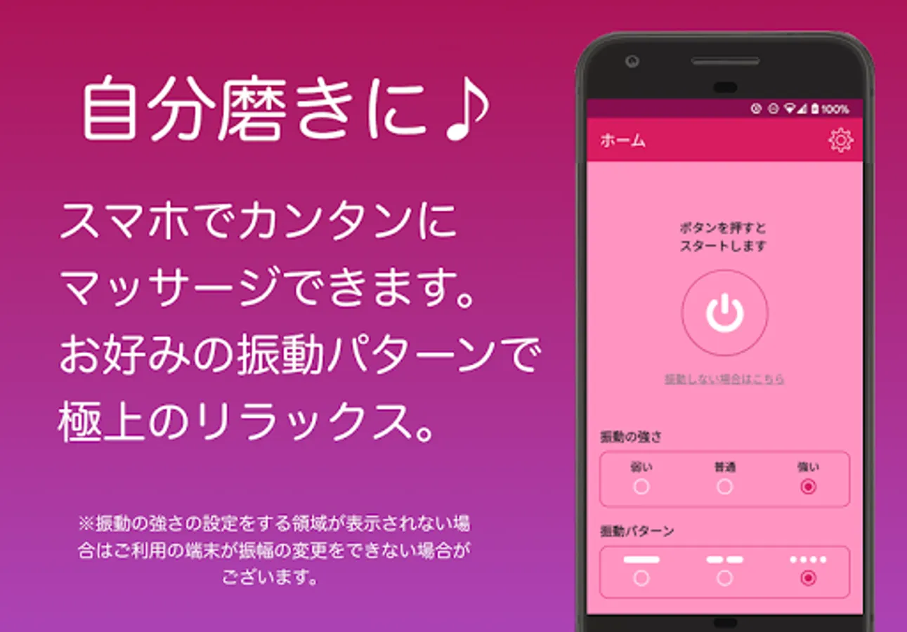 モバイルマッサージアプリ「エクスタ」はスマホでかんたんにマッサージができるバイブレーションアプリです。