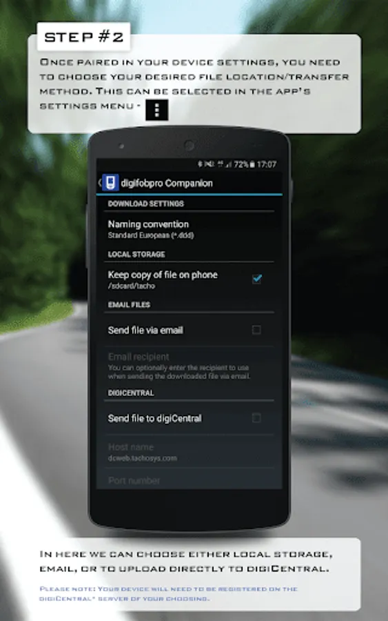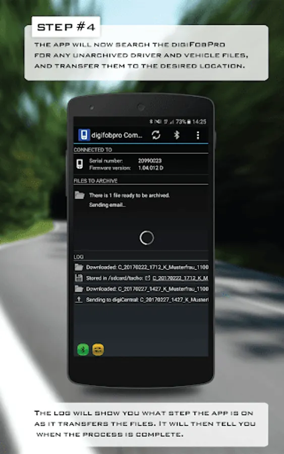 Connect your phone to your digifobpro via Bluetooth and save your Digital Tachograph files to your phone or tablet.