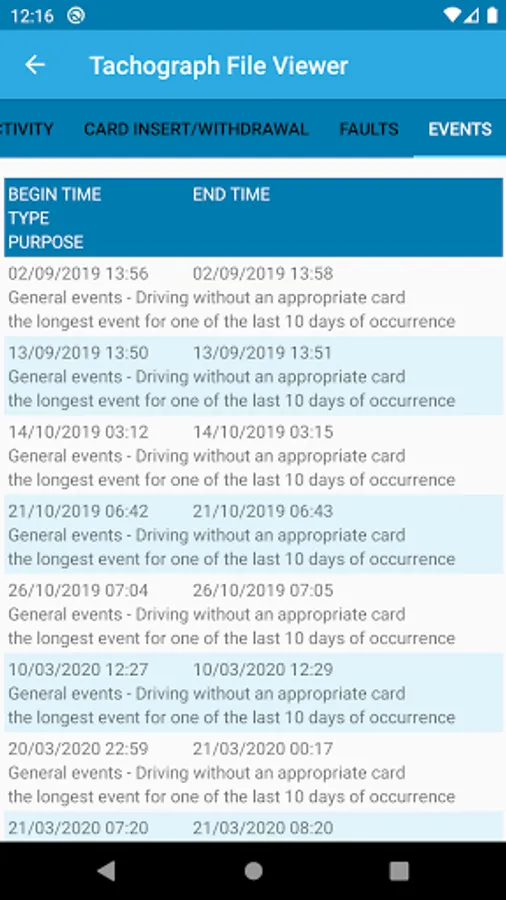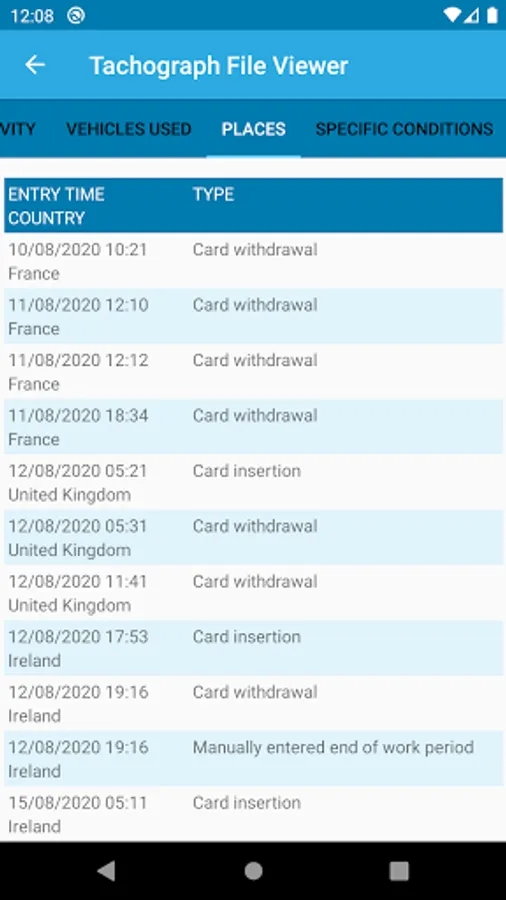 Tachograph File Viewer allows you to view digital tachograph files on your Android device.