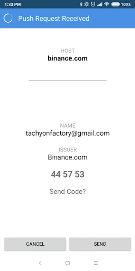 2. app only sends the current verification digits when you press "Send" button. It does NOT send anything or reveal about the secret code.