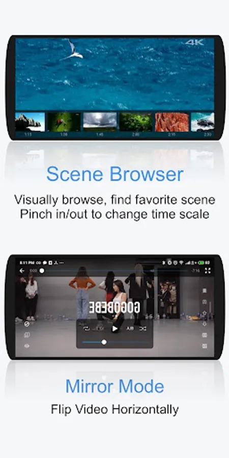 - Scene browser with pinch zoom : seek to favorite moment using video thumbnails