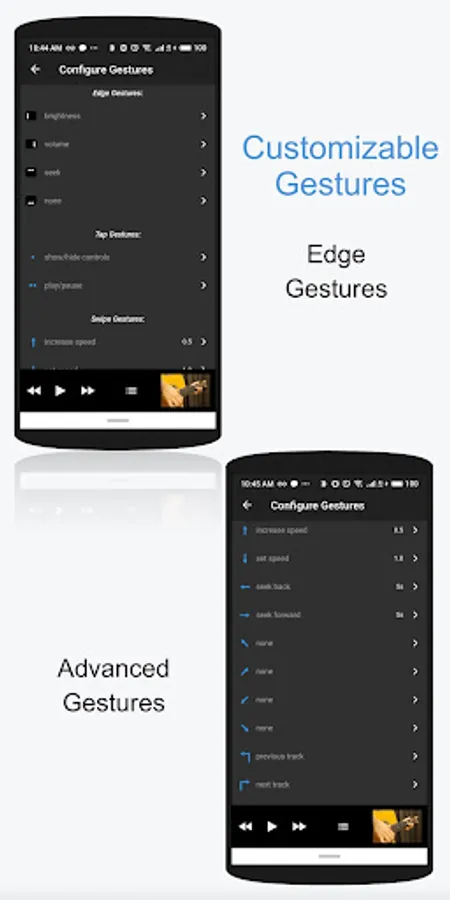 - Customizable gestures in player