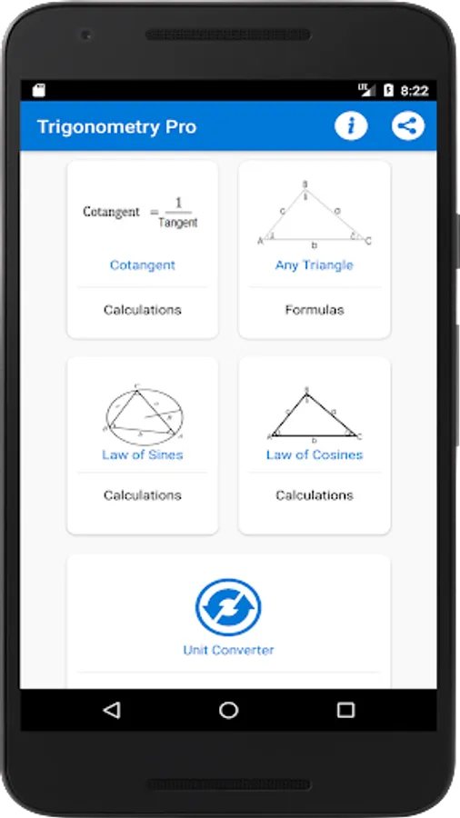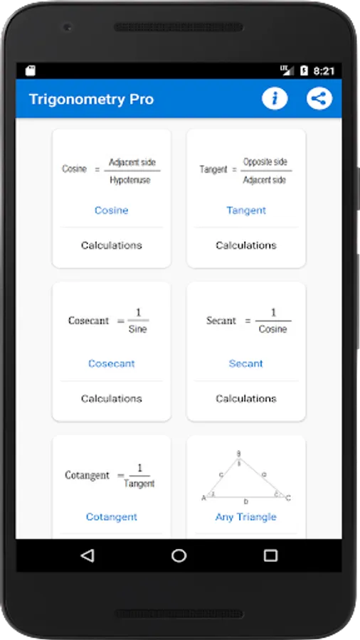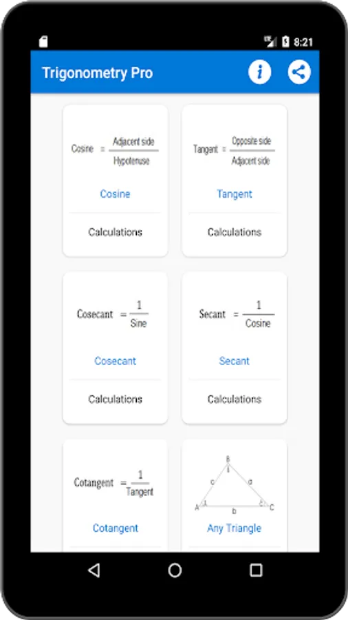 The App Trigonometry Calculations Pro is ad-free and works Offline!