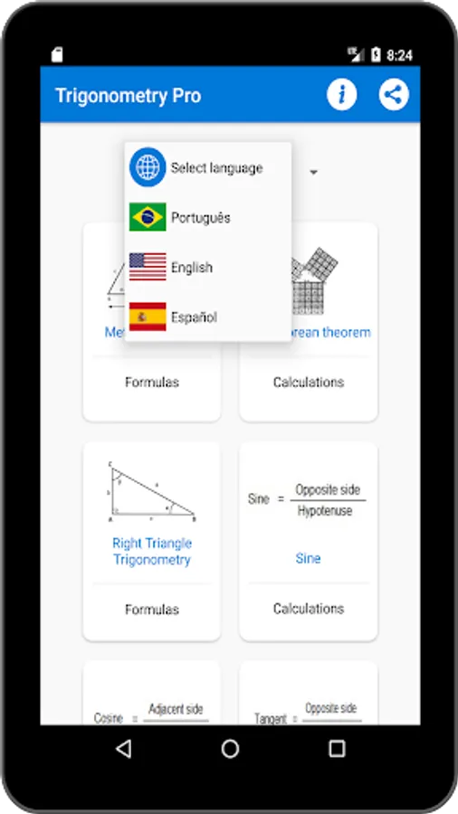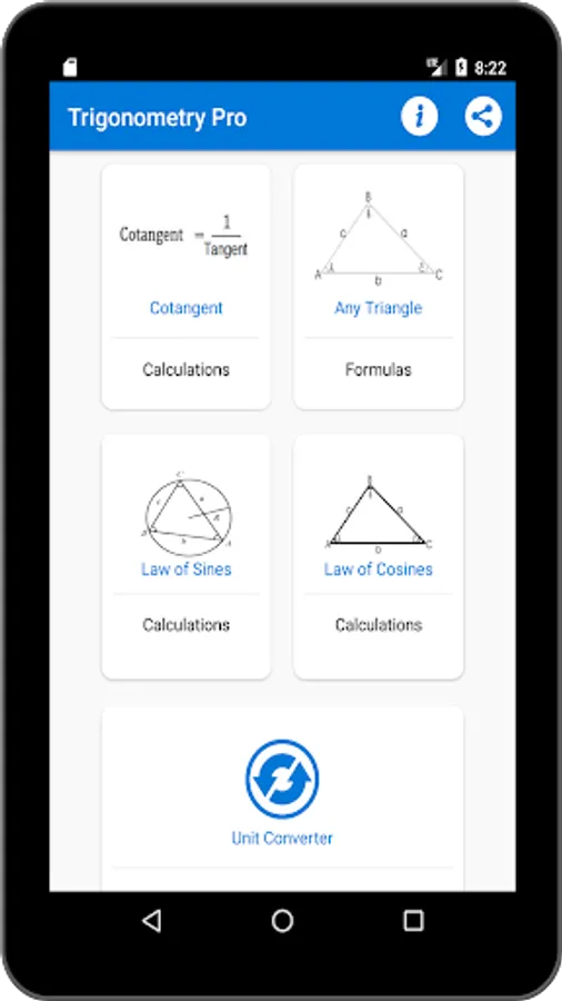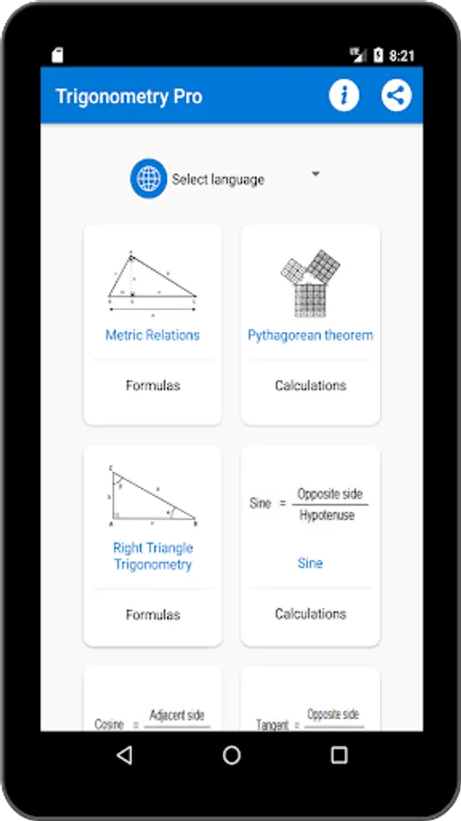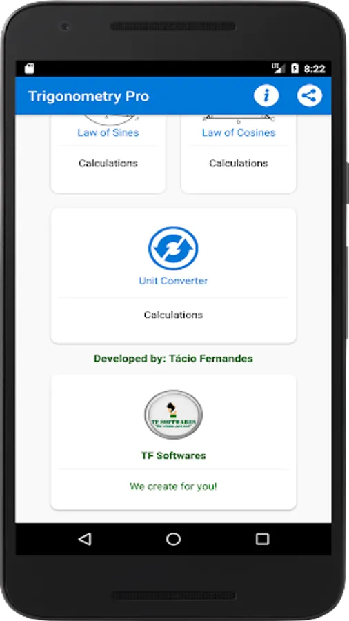 The App Trigonometry Calculations Pro from TF Softwares was developed to support students, in order to facilitate and assist the understanding of the basic calculations that are necessary to find the values of the sides and angles, of the triangles.