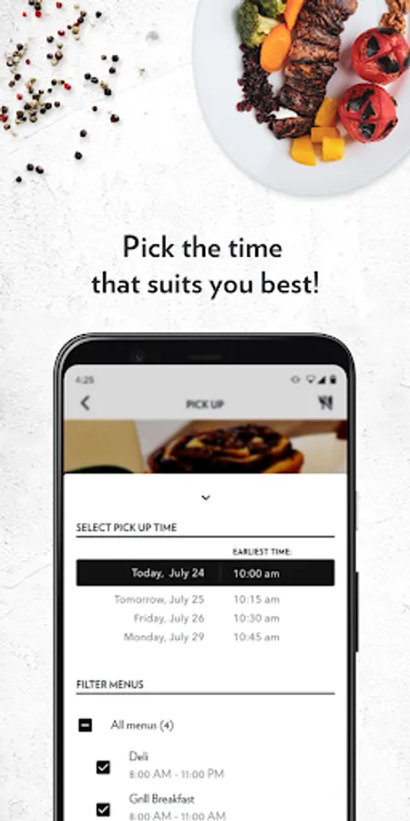 Choose a pickup time that works best for YOUR schedule. No more waiting around for your order to be ready. You decide when you want to pick up and we make sure it’s ready when you arrive.