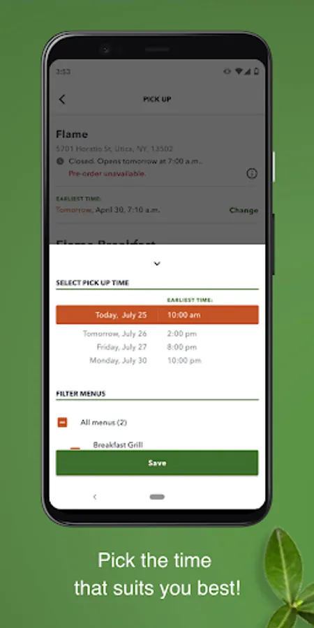 Selectable pickup times