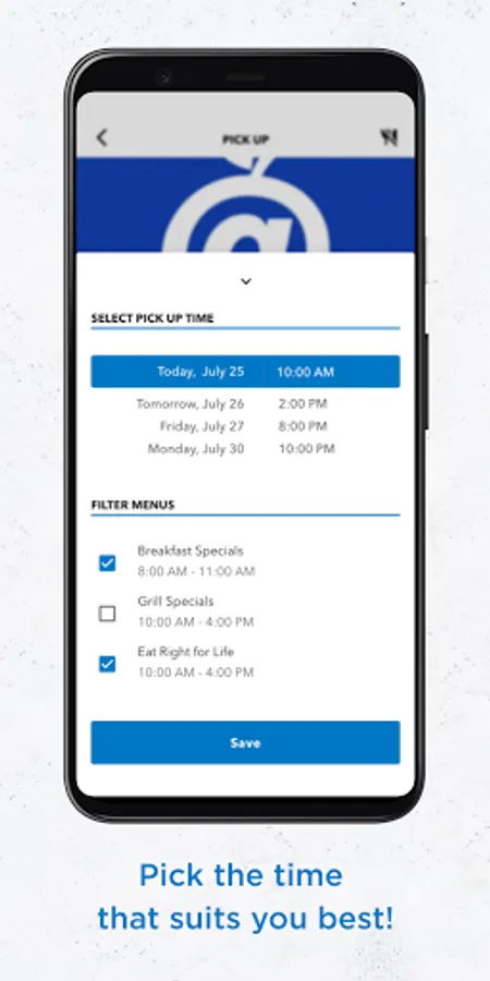 Choose a pickup time that works best for your schedule. No more waiting around for your order to be ready. You decide when you want to pick up and we make sure it’s ready when you arrive. Simple and easy.