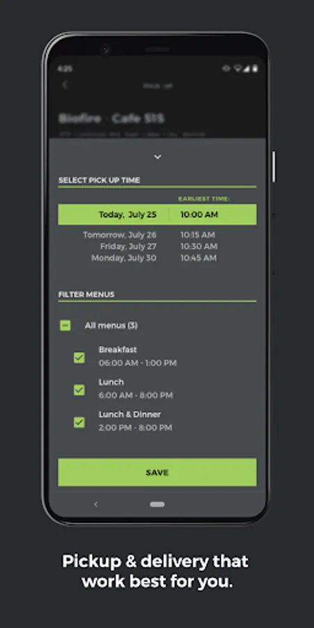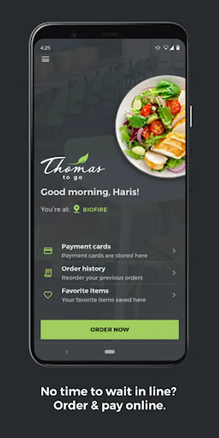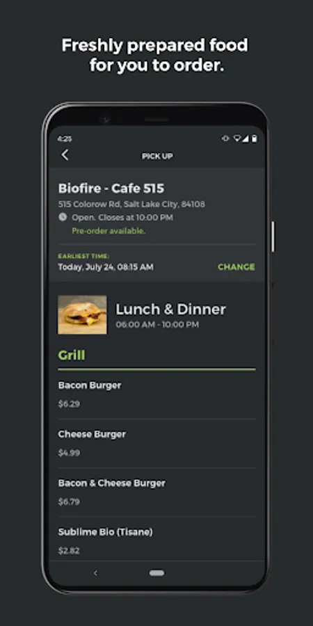 Order café items online, pay instantly, and choose a pickup time using your smartphone.