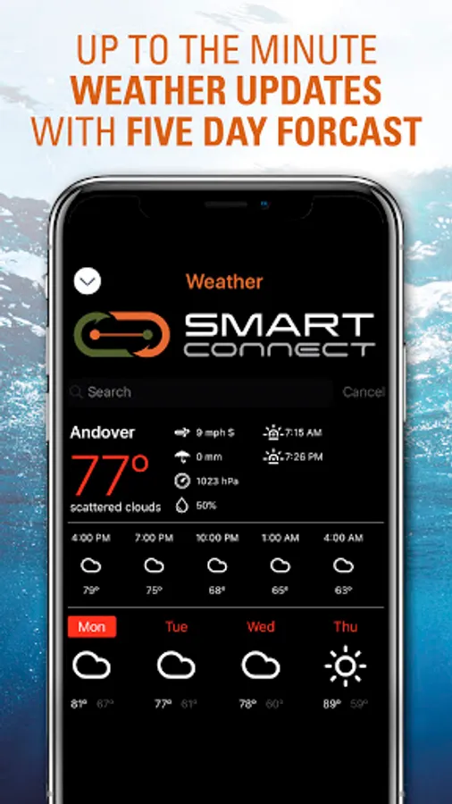 2. Check weather conditions and forecasts with temperature, wind speed, and barometric pressure.