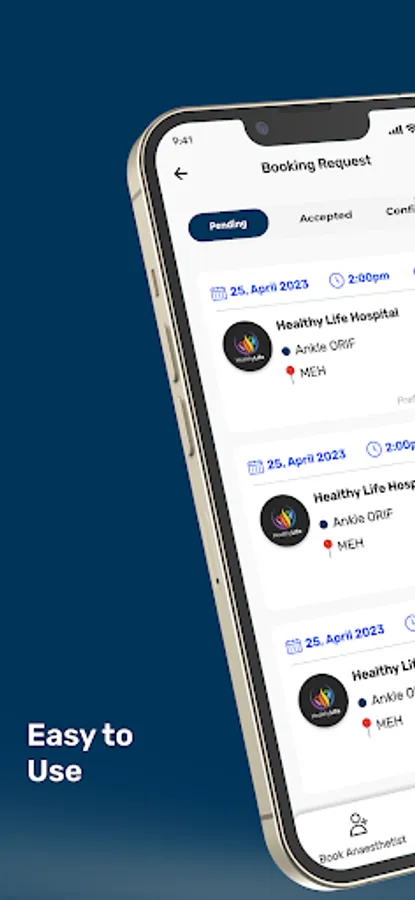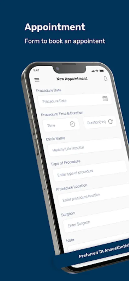 interface ensures a smooth booking process, ensuring the anaesthesia care when needed.
