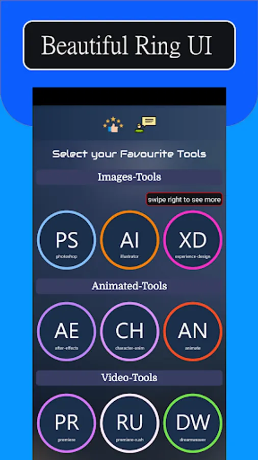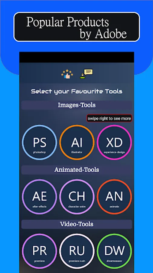 This app Adobe Shortcuts contains those all adobe products that comes in top 10