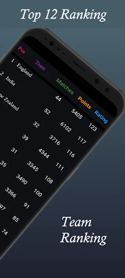 hand some players love to play Test match so app also supports test cricket rankings. App will show to its user odi team ranking as well.