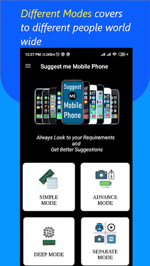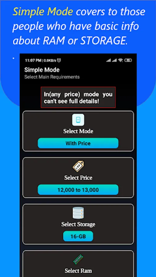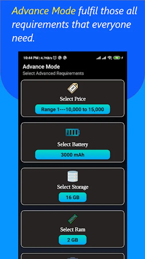 the app will suggest mobile according to the selected requirements. This mode will be your favorite mode if you are normal user.