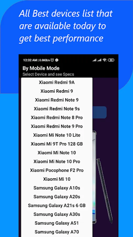 This mode is for those who are not interesting in suggestion but want to check all mobiles that are included in this app. So after selection of mobile
