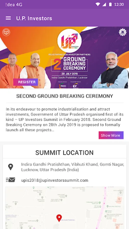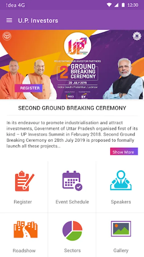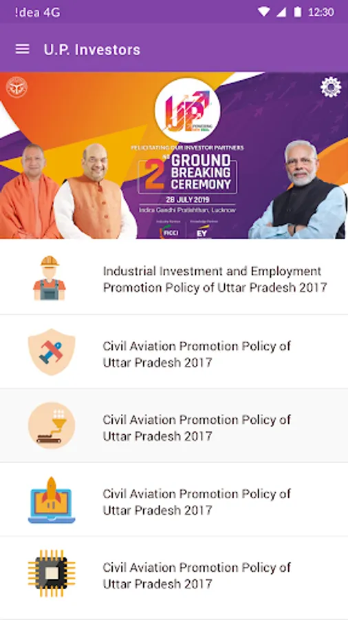 In its endeavour to promote industrialisation and attract investments, Government of Uttar Pradesh organised first of its kind – UP Investors Summit in February 2018. Second Ground Breaking Ceremony on 28th July 2019 is proposed to formally launch all these projects for necessary activities leading to completion of the proposed projects in Lucknow, and is expected to have participation of 2000 industrialists. This application provides the complete information related to the ceremony.