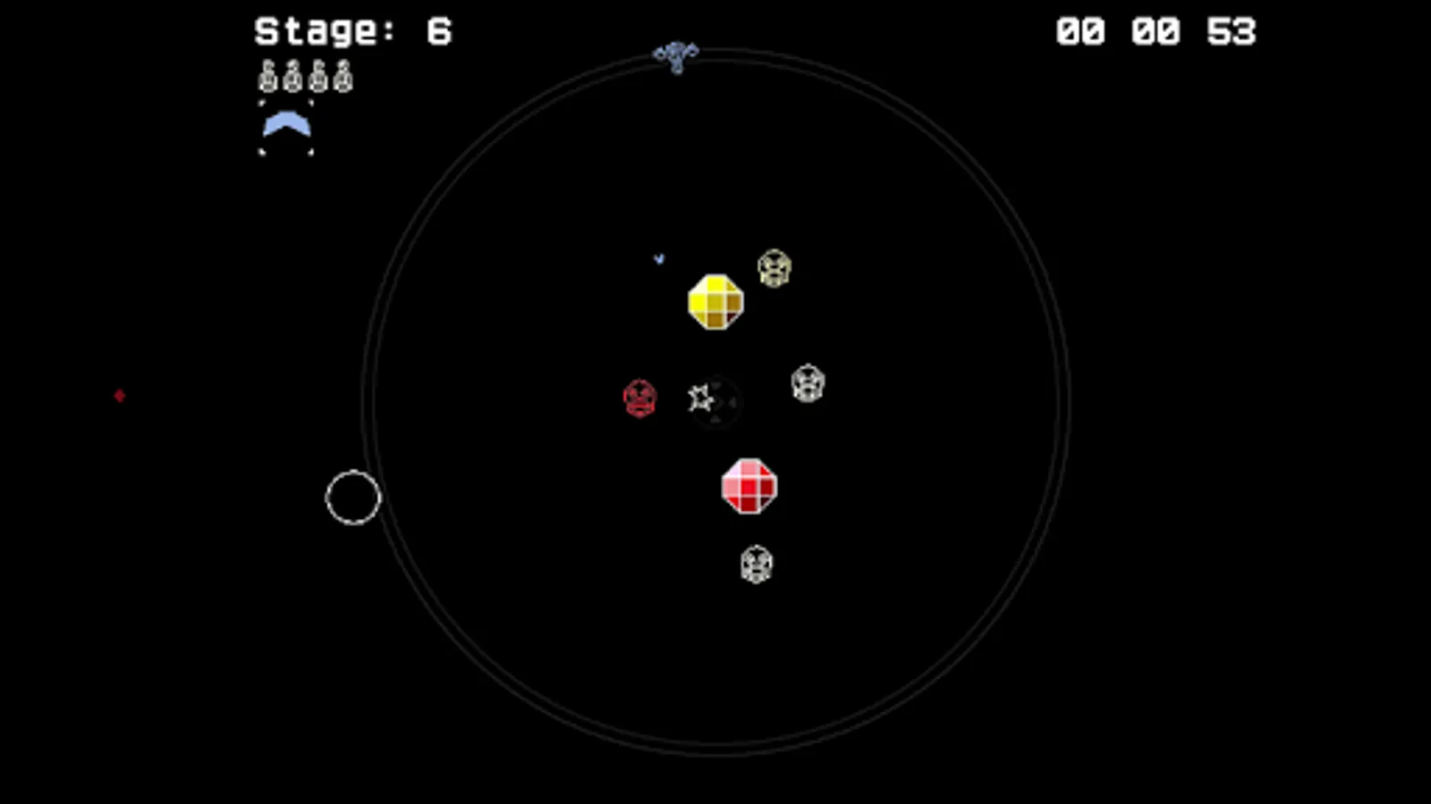 In this game, you control a spaceship that rotates around the screen. You must destroy the colored polygons to pass each level, shooting them with bullets with same color. And avoiding the enemies who will want to protect these polygons.