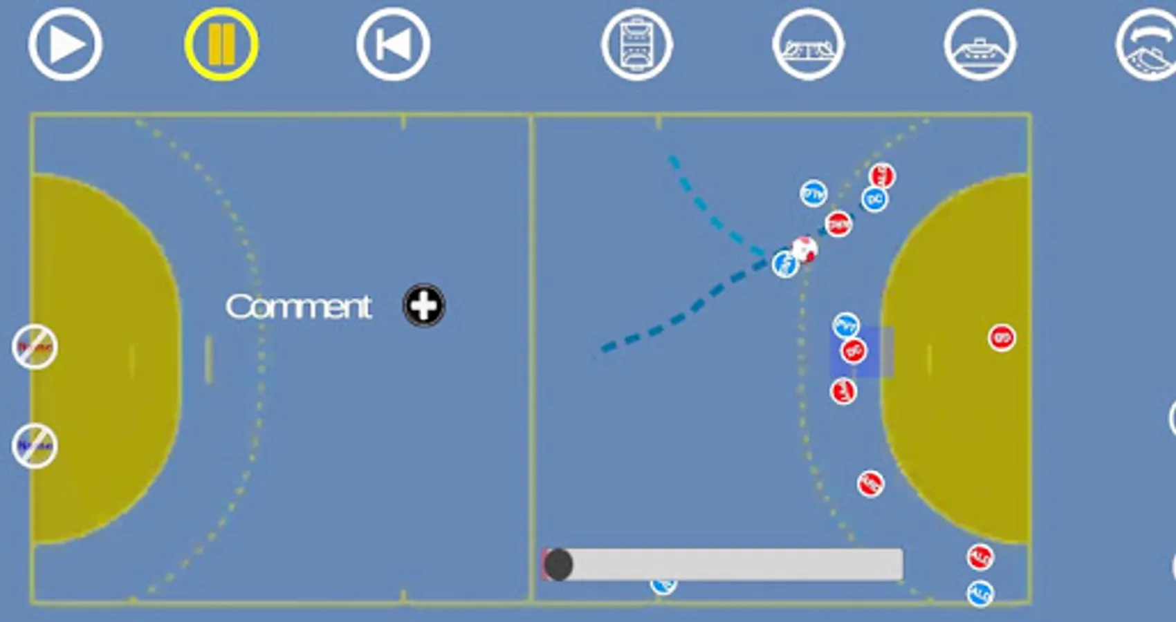 Then, handball players can have their playbook inside their mobile/tablet and can watch at home, during travel or just before a game their strategies.