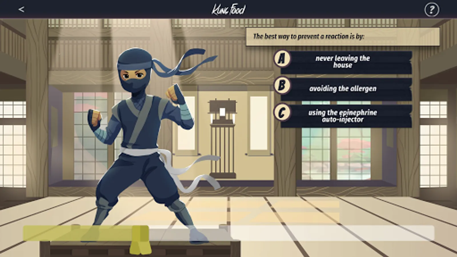 Aimed to improve knowledge and skills for youth living with food allergies, Kung Food was developed with healthcare experts featuring allergy trivia, allergy scenario simulations and textable personalized Allergy Alerts for friends and family.