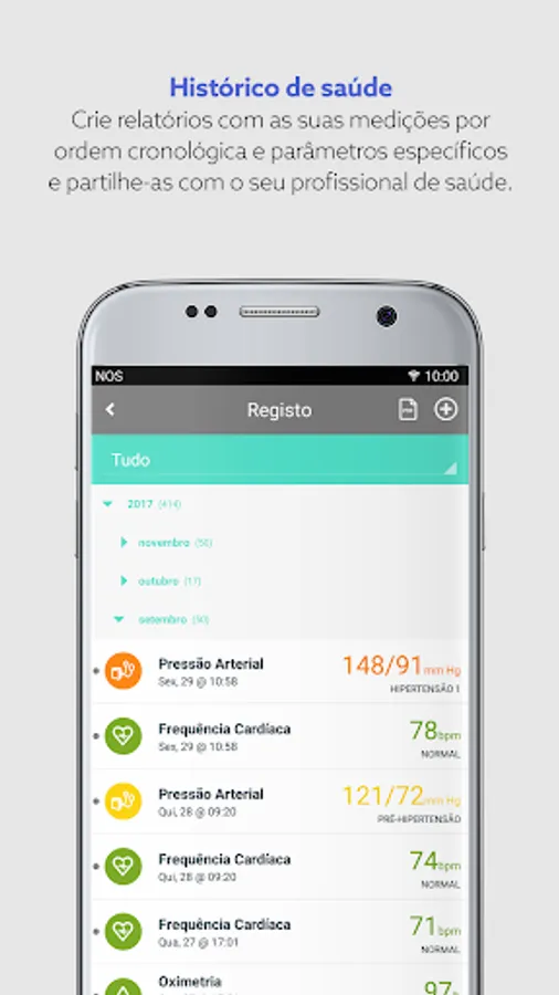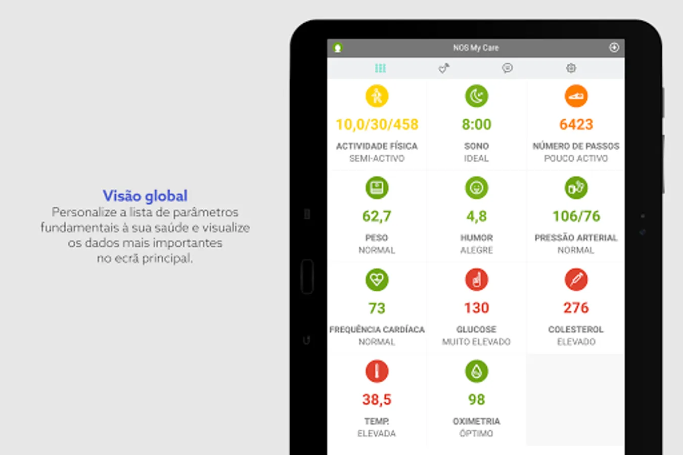 NOS My Care is compatible with a wide range of applications and metering devices, enabling automatically register parameters such as height, sleep, steps, weight, waist, blood pressure, blood glucose, body fat, temperature, pulse oximetry or cholesterol.