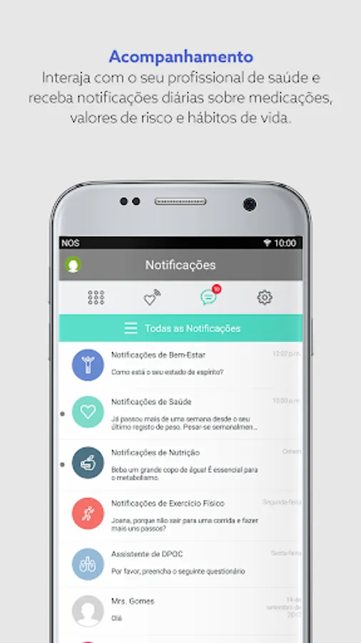 NOS My Care is medical app for patients placed in solution IN Care Monitoring, a connected solution that allows continuous patient monitoring through monitoring of different health outcomes in day-to-day, simply and effectively.