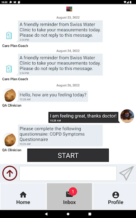 You will also be able to exchange messages (text, photo) with your health provider using the “Inbox” section of the app.