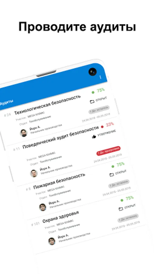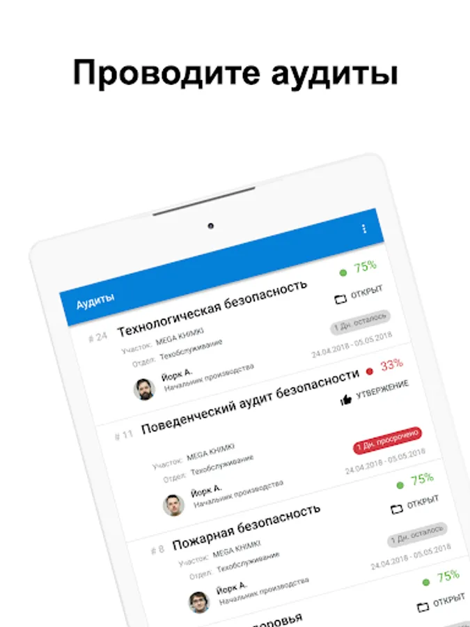 Create tasks and record hazard maps from audits. Track deviation fixes.