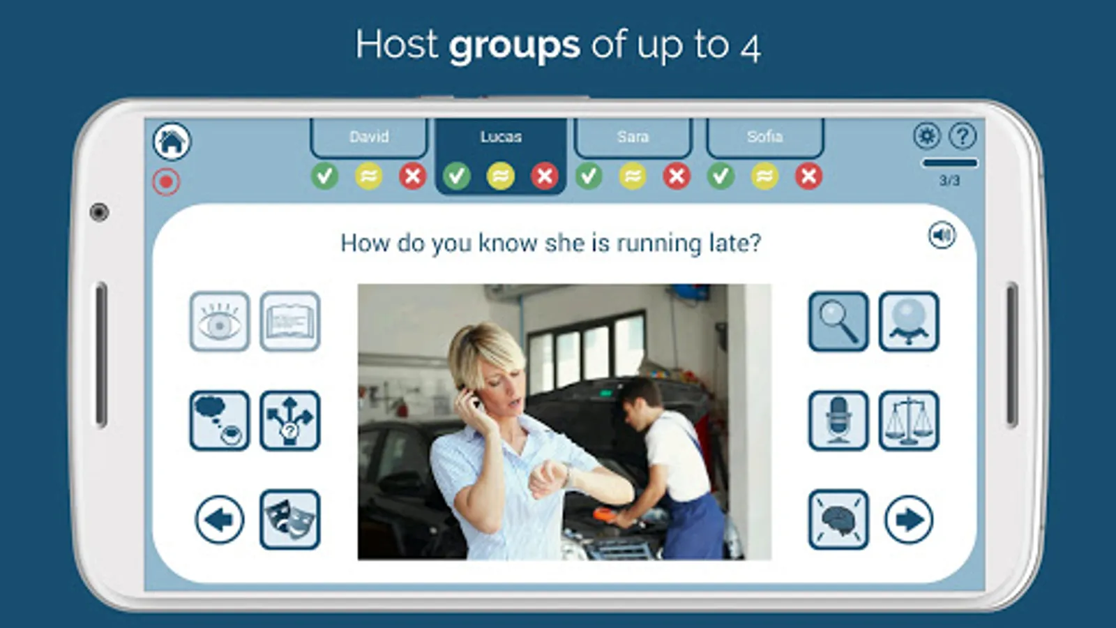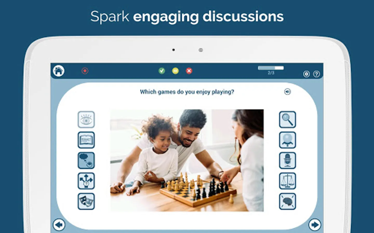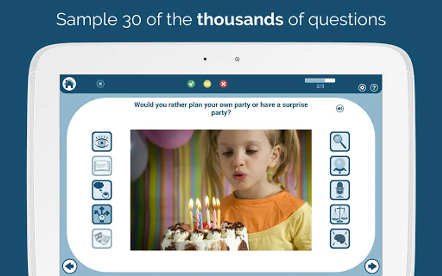 Even those with limited speech have opinions to share; use these opportunities to help find new ways of expressing complex thoughts – the responses you get from this app are sure to surprise, impress, and illuminate strengths & weaknesses in your clients. The vivid pictures and interesting topics in this app will spark discussion, learning, and debate. These questions don't have "right" or "wrong" answers, but there are appropriate answers, well-formed responses, and clearly spoken replies that can be scored.