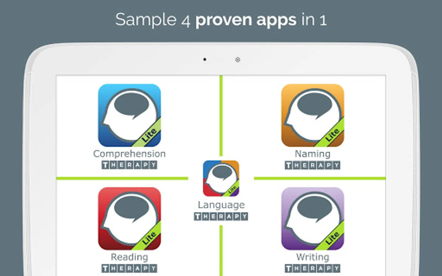 Join over 100,000 people world-wide by getting your free trial of the best-selling Language Therapy app, a 4-in-1 value pack combining Comprehension, Naming, Writing, and Reading Therapy.