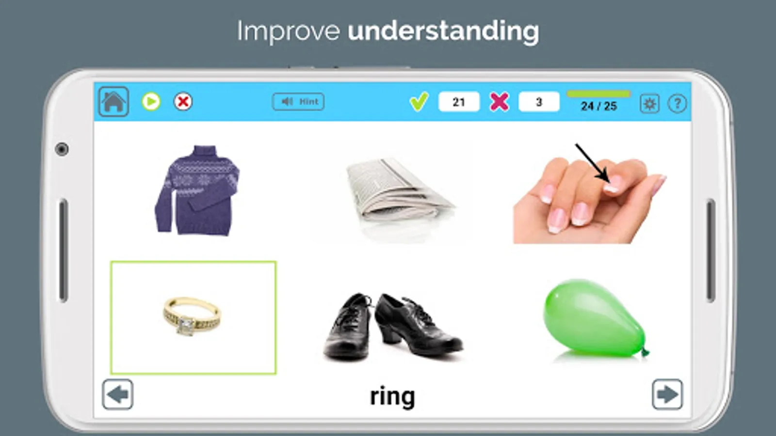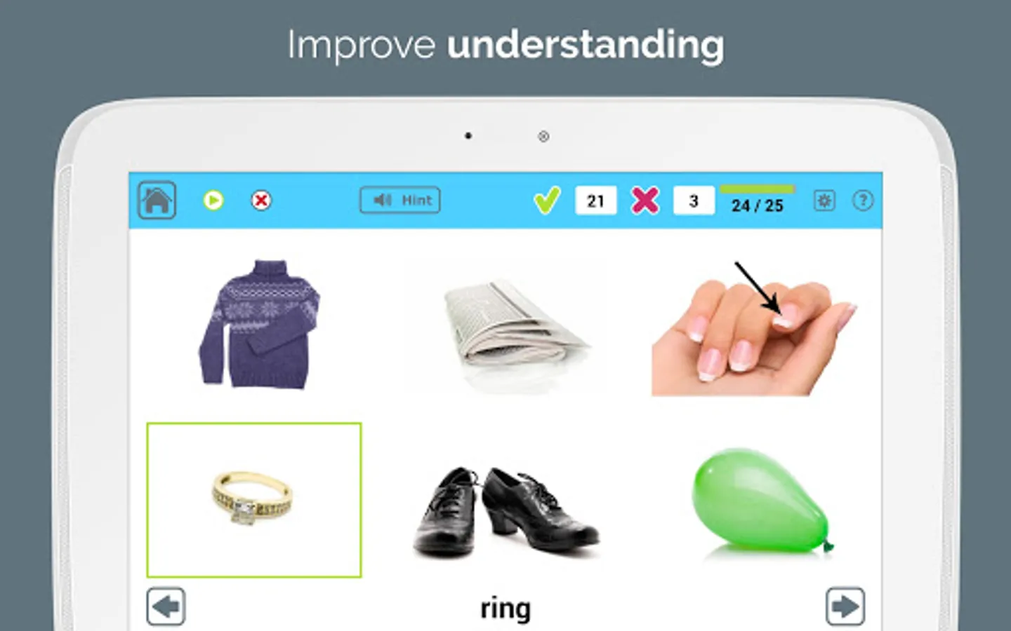 Build listening and reading comprehension skills for nouns, verbs and adjectives. Take the first step in your aphasia recovery with an app that automatically adjusts difficulty based on performance.