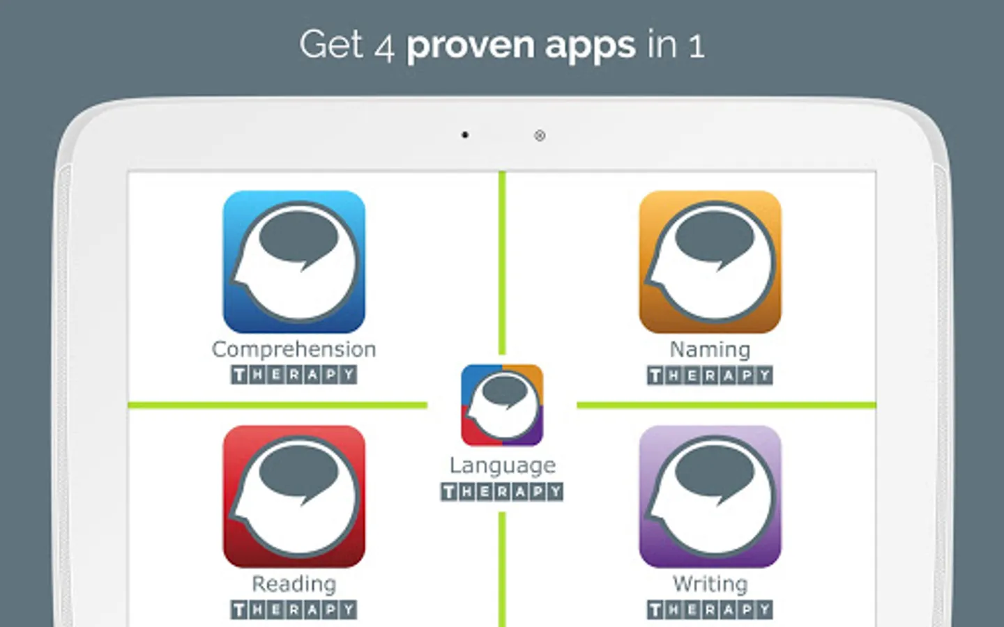 Harness the power of a scientifically proven 4-in-1 speech therapy app that boosts reading, writing, speaking and listening in people with aphasia after stroke.