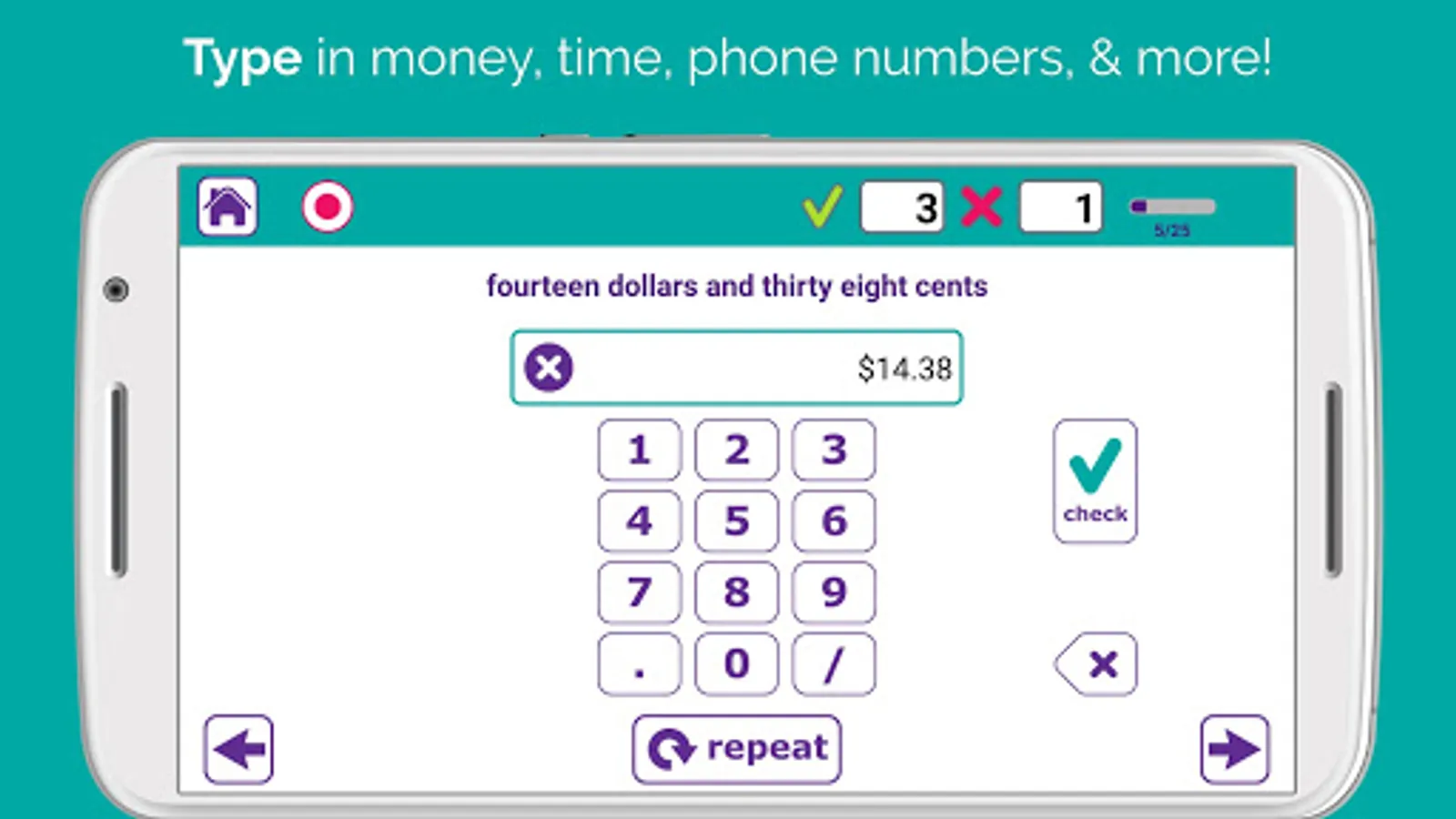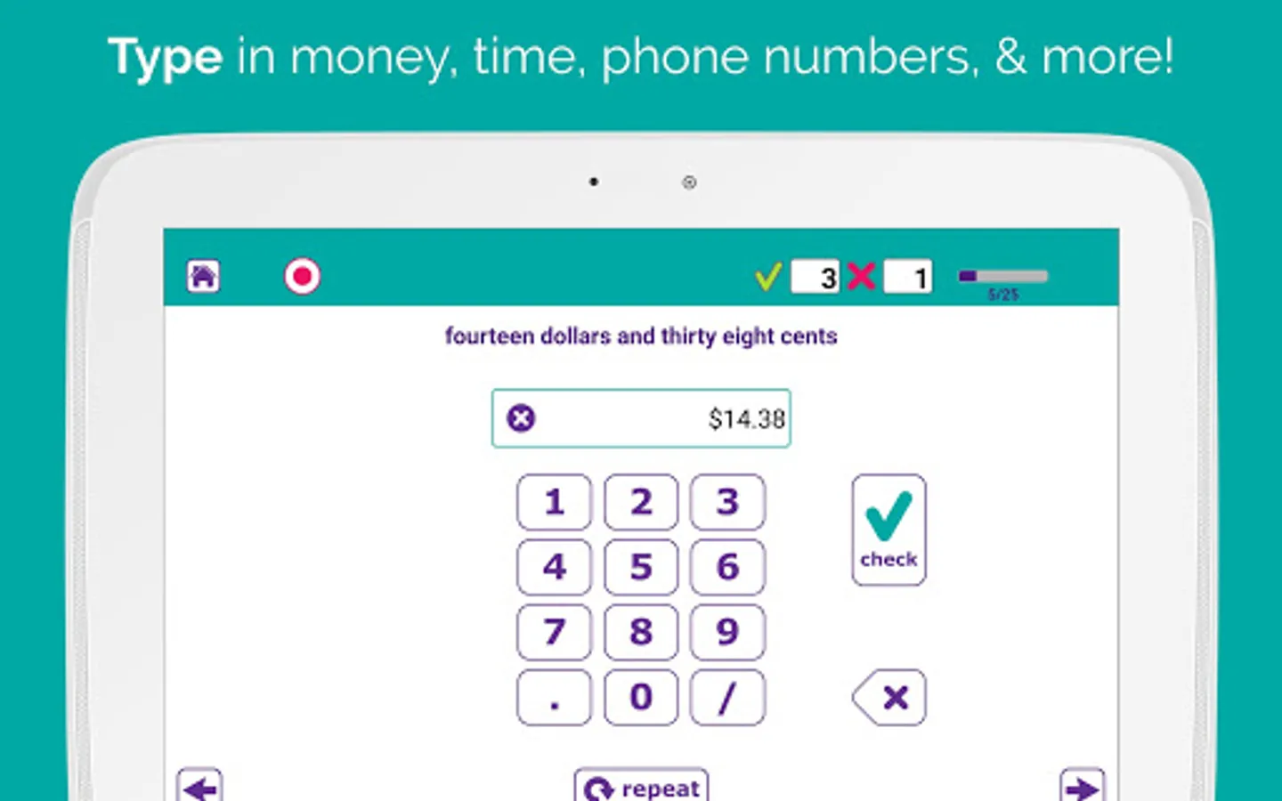 *Please note: this app does NOT address math skills or equations. It focuses on the communication of numbers, not calculations.