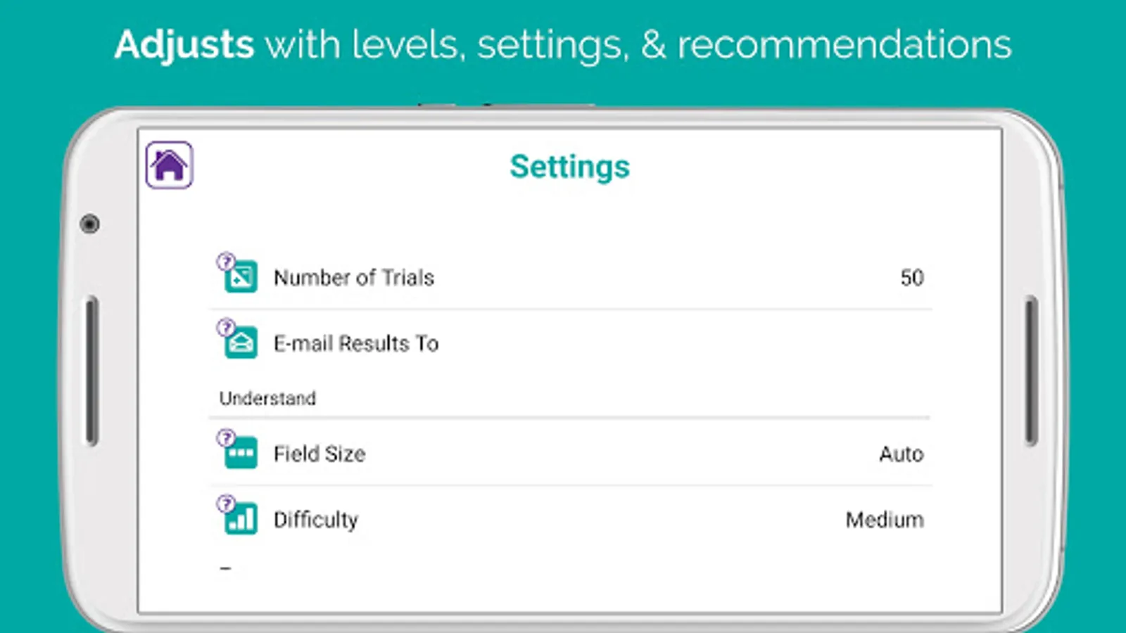 Number Therapy also has a feature to give you recommendations for which level and settings you should use based on your score. See how easy it is to make progress when you're working at the right level for you!