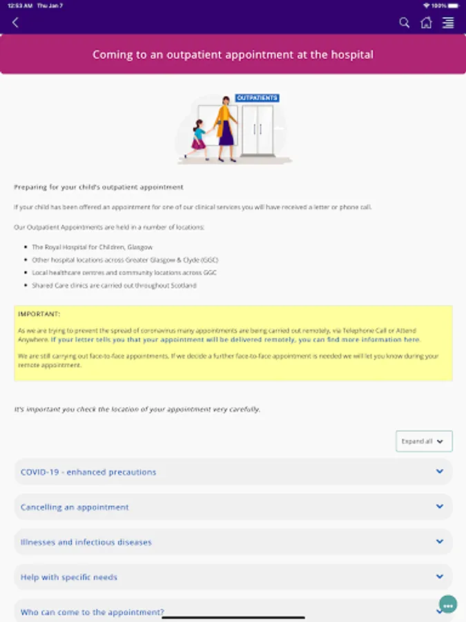 We have created this app to help patients and parents, prepare for and navigate their visit to RHC, as well as signposting local health information and resources.