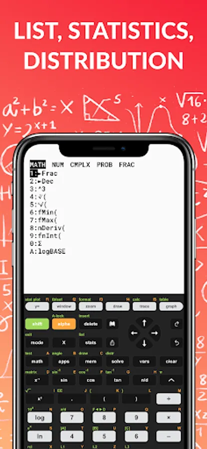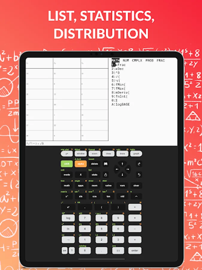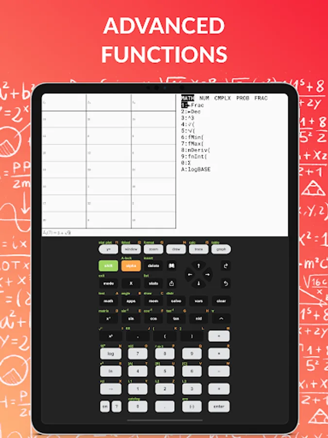 • Includes all the commands and functions for advanced math, list, statistics, distribution, stat plots, etc.