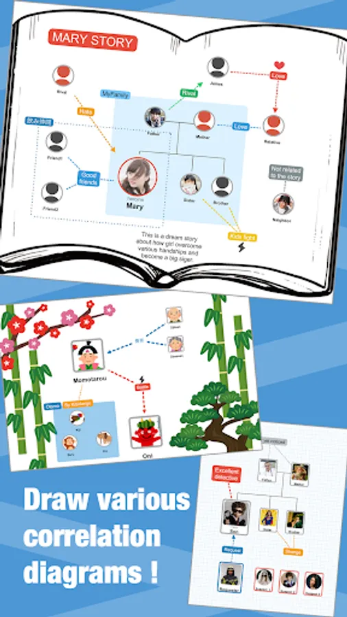 Create a character relationship diagram of novels, manga, movies, dramas, games, historical figures, etc.