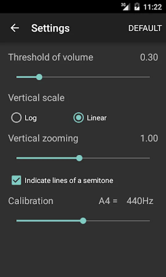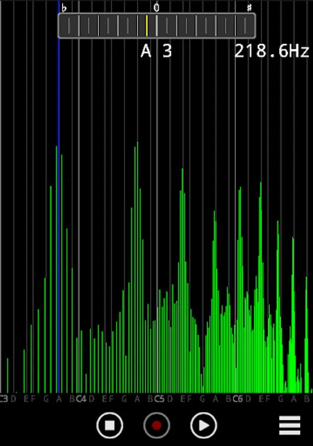 Moreover, value (Hz) of the pitch and the music scale name are displayed in the top of the screen.