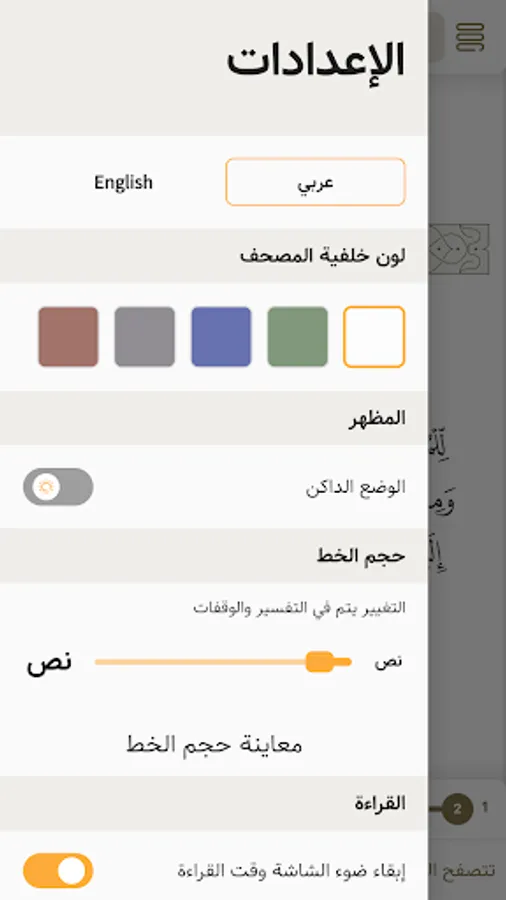 * مميزات أخرى : مثل الورد اليومي - الوضع الليلي - تغيير ألوان الخط والخلفية - إضافة ملاحظة للآية - وضع علامة للرجوع للصفحة - تكبير خط الوقفات وتصغيره ، وغيرها من المميزات الرائعة .