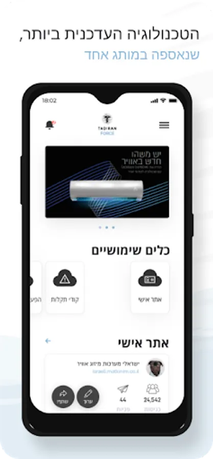 The application allows the installer to register the warranty for the customer in a simple and user-friendly. Also with the app you can contact directly Tadiran's support center, to be answered failures, service, spare parts, obtain extensive information about Tadiran Air Products and more.
