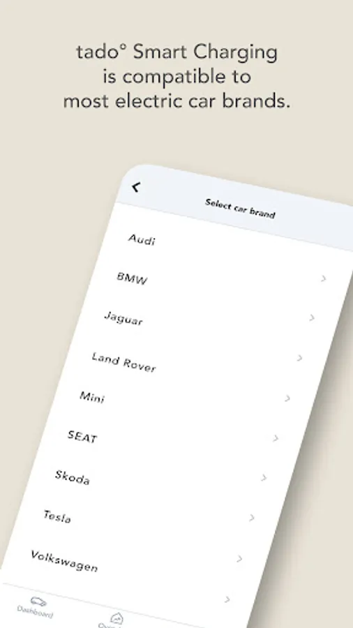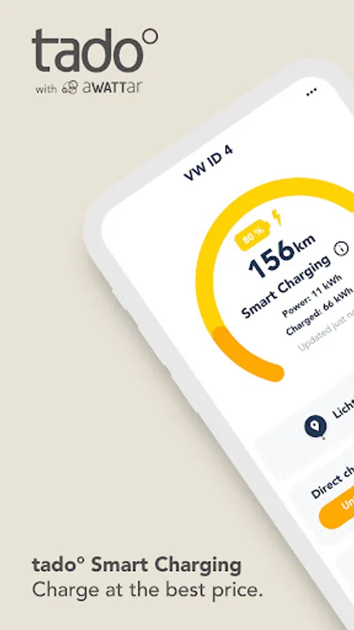 • No additional hardware required: tado° Smart Charging connects to most electric cars.* Just download the app and connect it via your car’s user account (e.g. Tesla, Volkswagen, BMW, Audi, and many more)
