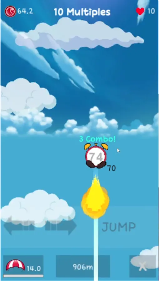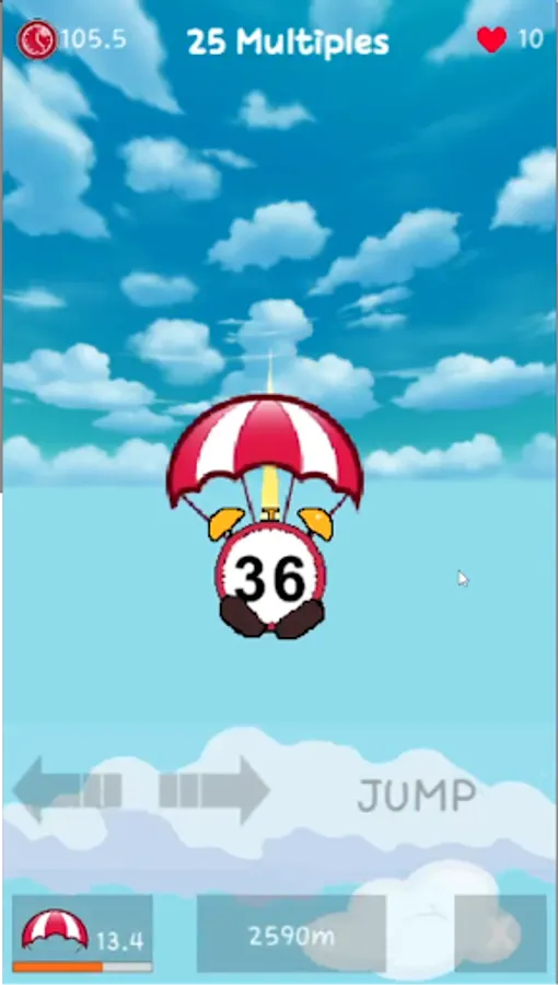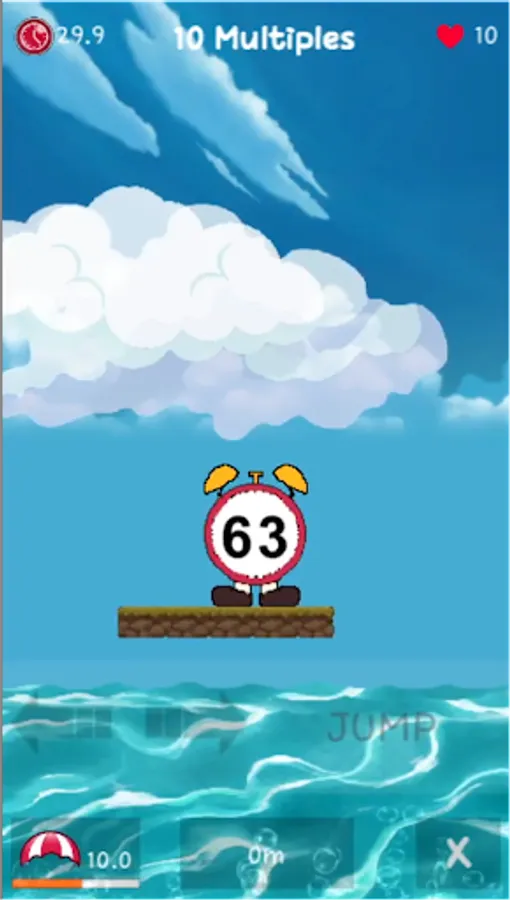 예를 들어 상단 중앙 목표 숫자가 10multiples이면 10 배수에 맞춰 점프하면 됩니다. (0 포함)