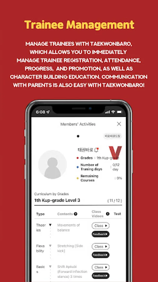 Taekwonbaro is an app for Taekwondo training and member management, and is a platform designed for both trainees and instructors to offer training service efficiently and conveniently.