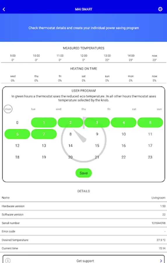 With this App you can monitor and adjust compatible Bluetooth thermostats. Create a weekly program to save energy, check an energy consumption of a previous week or use as a professional tool to install and monitor new thermostats!